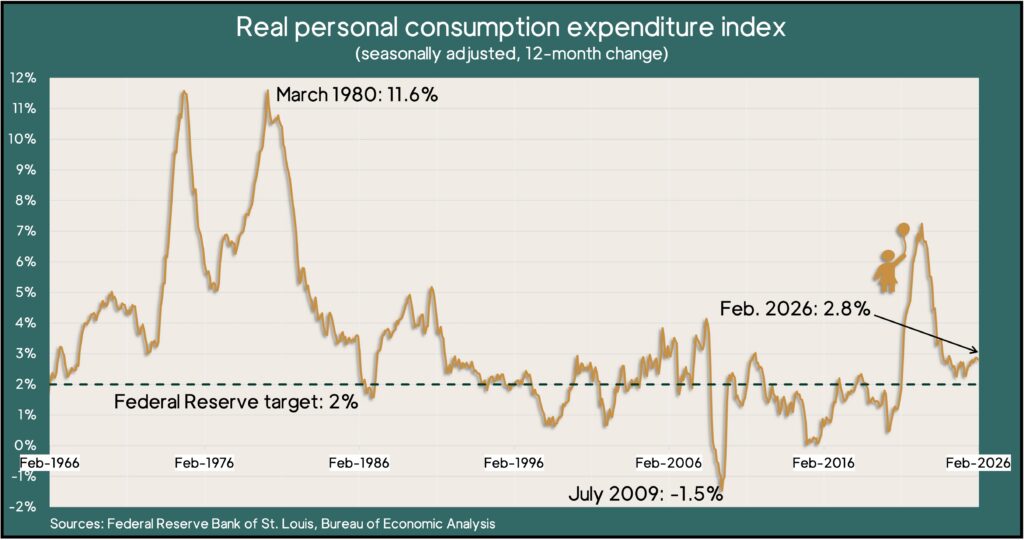 The Bureau of Economic Analysis separately reported that consumer spending rose 0.5% in February. Meanwhile, personal income fell 0.1%, resulting in a drop in the personal savings rate. The same report showed the Federal Reserve Board’s favorite inflation gauge unchanged from January at 2.8%. The Fed’s long-term target for inflation broadly is 2%.