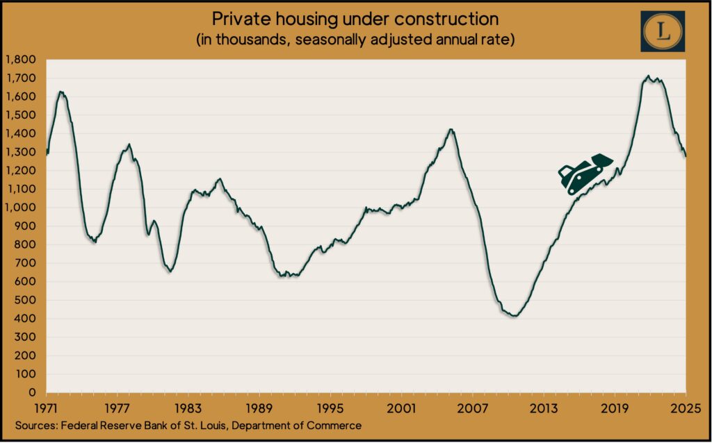 Home construction gained slightly in December but continued to provide little relief to ongoing inventory shortages. The Commerce Department said the annual rate of housing starts rose 6% from November, though it was down 7% from the year-ago pace and has remained below the pre-pandemic level since mid-2023. The pace of housing permits also rose for December but kept under the pre-pandemic rate. The number of houses under construction was down 26% from its peak in November 2022.