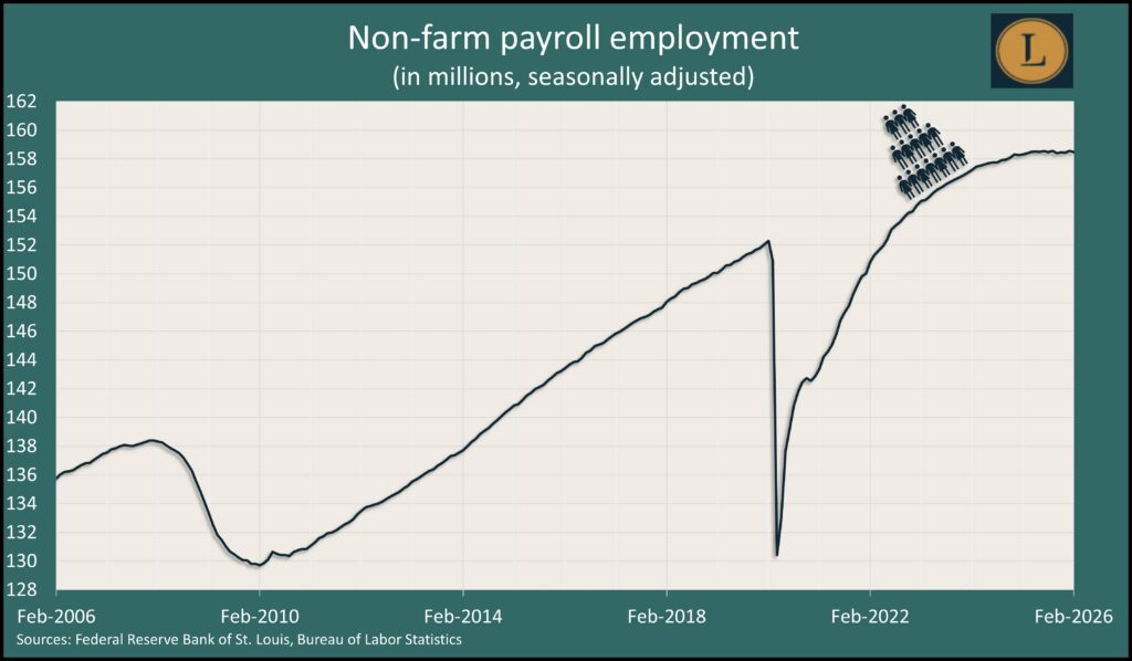 The Bureau of Labor Statistics said worker productivity rose at an annual pace of 2.8% in the fourth quarter of 2025. The rate resulted from the annual pace of output rising 2.6% while hours worked decreased at a 0.2% pace. Productivity advanced 2.2% over the last four quarters, equal to the average since the end of 2019. That compared to 1.5% annual growth in the previous 12-year business cycle and an average of 2.2% since 1947. Labor costs rose 1.3% in the last year, and the share of output accrued to workers through compensation reached a record low in data going back to 1947.